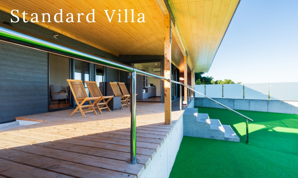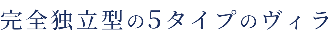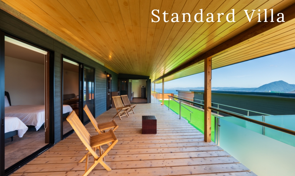 完全独立型のヴィラ。100㎡の広々とした空間で誰にも邪魔されない贅沢なひと時を。和洋室タイプで5名様までご宿泊が可能。ご家族やご友人同士はもちろん、おふたりでゆったりと過ごす滞在にもおすすめです。